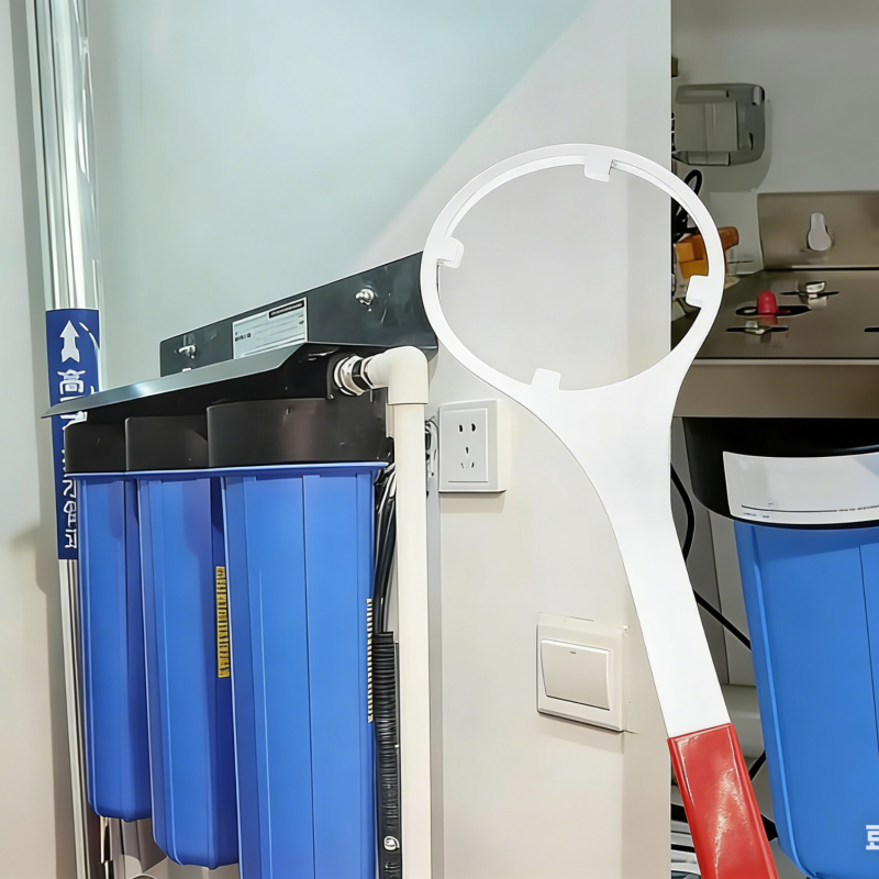 - 使用优势:环形卡扣设计可紧密贴合滤瓶顶部,配合加长手柄的省力杠杆结构,轻松解决滤瓶因水压或长期使用导致的拧合过紧问题,无需专业工具即可完成滤芯更换。