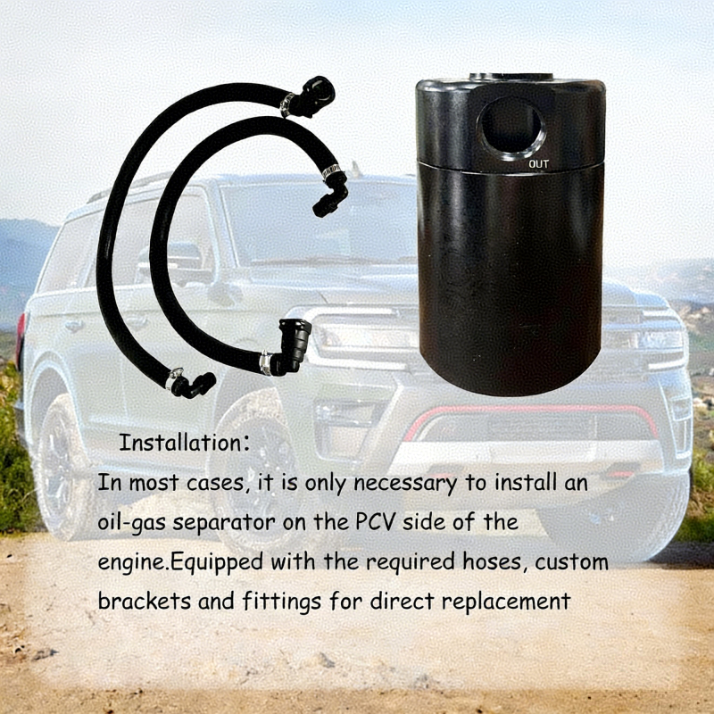 在多数情况下,仅需将本产品安装于发动机的 PCV 阀侧即可。产品出厂配备所需软管、定制支架及接头,无需额外配件,可直接替换安装,操作简便。