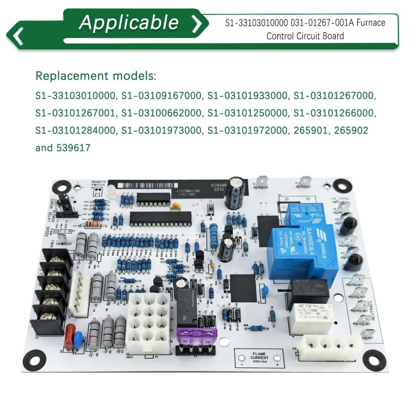 S1-33103010000 炉体控制电路板是一款高品质直接替换配件,专为约克(York)、乐信(Luxaire)、科尔曼(Coleman)集成控制炉设计,同时兼容 White-Rodgers 50A56-242、50A56-243、50A56-956、50a56-242-91 等型号,可直接替换约克 031-01267-001A 以及 S1-03109167000、S1-03101933000、265901、265902、539617 等多个系列旧件,覆盖广泛适配场景,为故障炉体提供可靠的核心控制解决方案。
