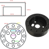 这款黑色方向盘转接座专为 1 英寸方向盘轮毂设计,实现 6 孔方向盘到 3 孔轮毂的转换,适配多款进口 6 孔方向盘。采用实心铝合金材质打造,坚固耐用,配件齐全,满足方向盘改装需求。