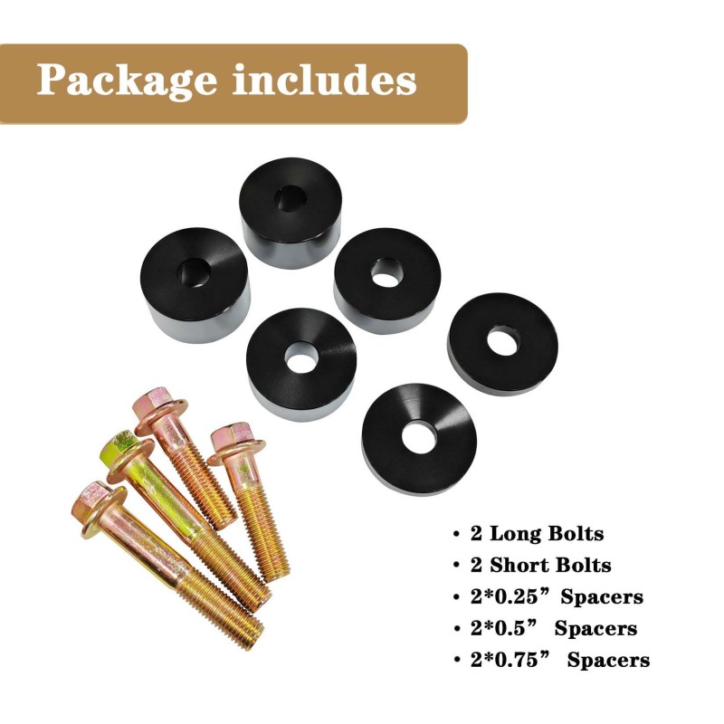 注意:每套产品包含 6 个座椅垫片和 4 颗螺栓,仅适用于 1 个座椅;若需改装两个前排座椅,需购买 2 套。