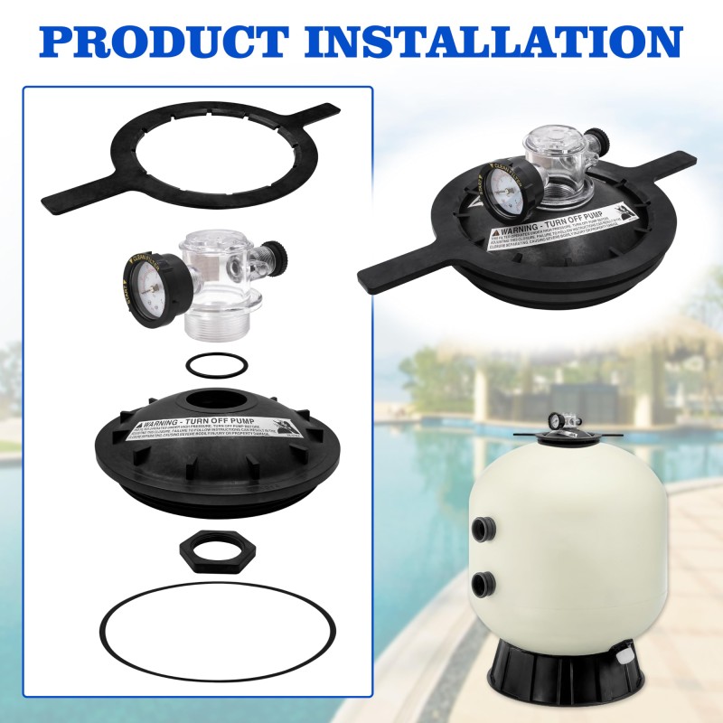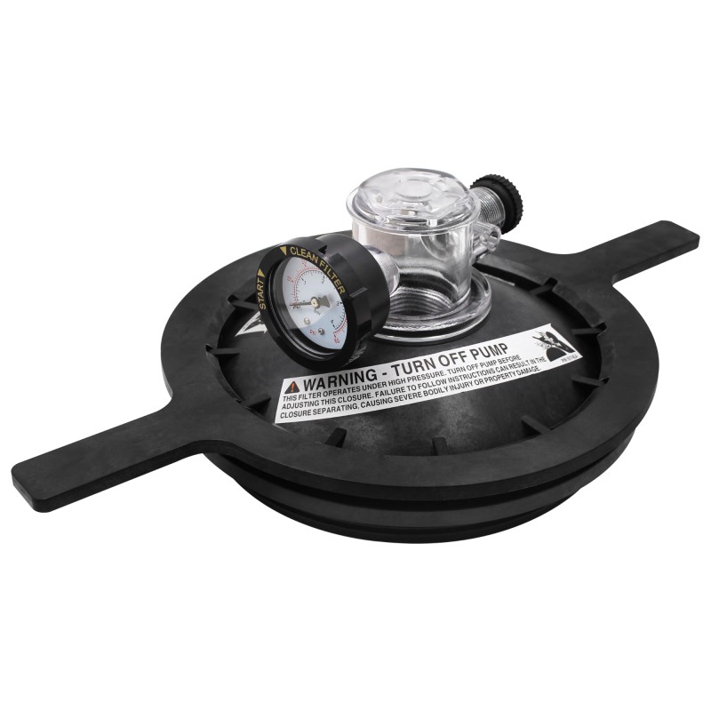 配套的盖子扳手与密封盖上的凸起精准适配,拆装过程省时省力;附带的压力表与可视化排气阀,可直观监测过滤器内部水压及气体情况,方便您随时检查系统运行状态,维护更省心。