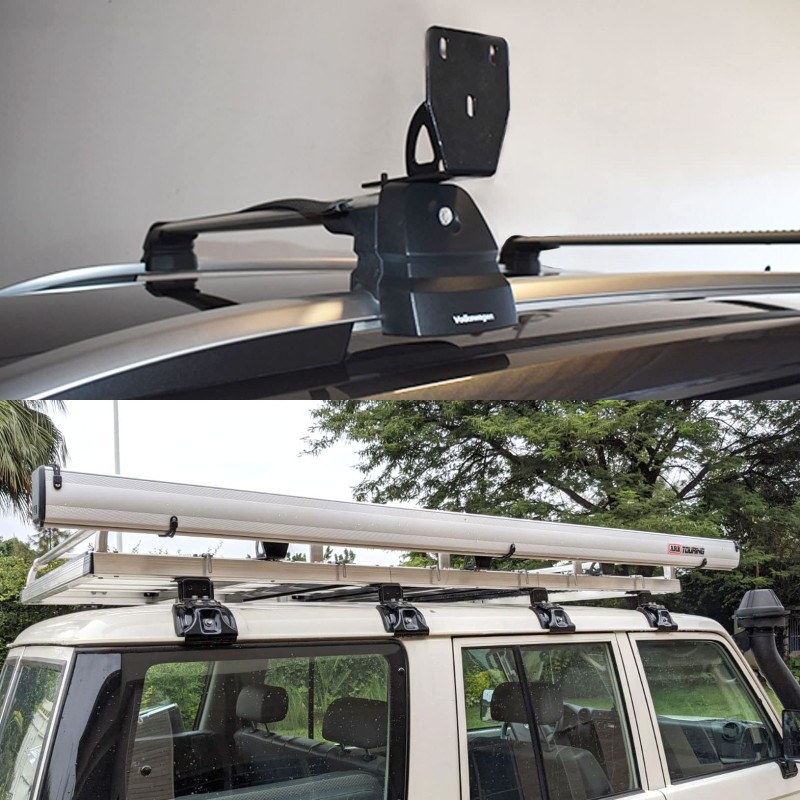 支架为通用型规格,可匹配市面上多数车顶行李架、货物框,且兼容全尺寸遮阳棚安装,不受遮阳棚大小限制,适用于多种车型的户外出行装备搭配。