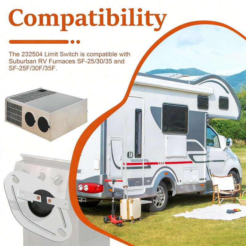 1. 这是一套全新的 232504 房车炉限位开关,采用顶尖的质量标准打造,为你的房车炉带来出色的使用表现,完美适配 Suburban SF-25/30/35 以及 SF-25F/30F/35F 房车炉。