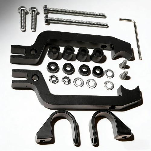 材质方面,整套支架采用6061阳极氧化铝打造,经过特殊阳极氧化处理,不仅重量轻盈,有效减轻全地形车把手负重,还具备极强的强度和耐用性,能够抵御全地形行驶中的碰撞、磨损及恶劣环境侵蚀,长期使用不易变形、生锈,适配复杂越野场景。